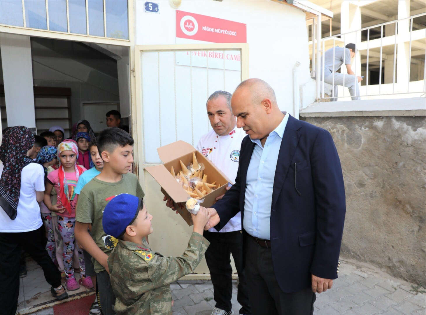 Teyfik Birer Camiinde devam eden Yaz Kuran Kursunda eğitim gören minikleri ziyaret eden Niğde Valisi Mustafa Koç, kursa katılım sağlayan minikler ile sohbet ederek, yaz tatilini ve Kuran Kursunu iyi değerlendirmeleri yönünde tavsiyelerde bulundu.