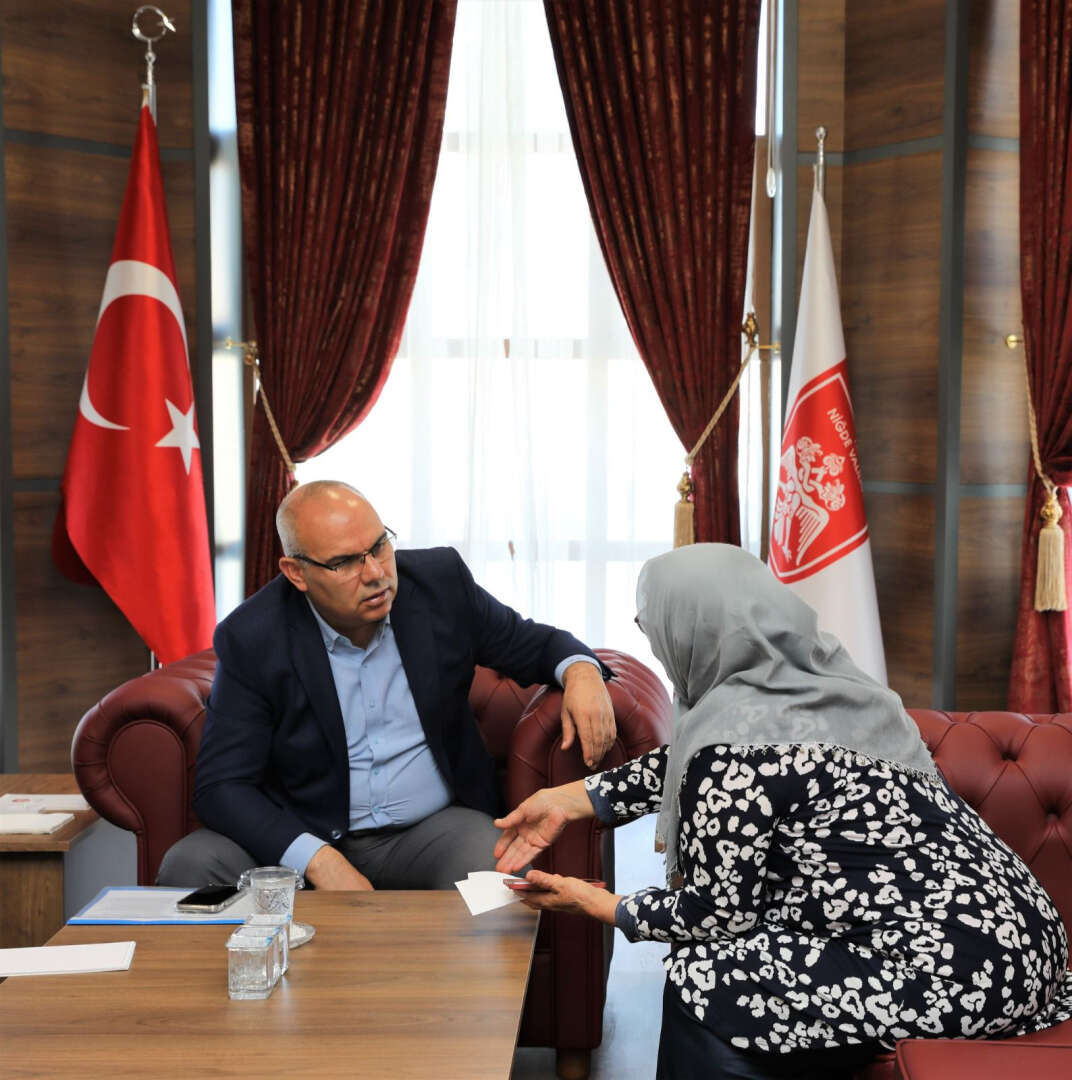 Niğde'de yaşayan vatandaşların sorunlarını ve taleplerini ilettiği Perşembe günleri düzenlenen halkla buluşma etkinliği bugünde gerçekleştirildi. Niğde Valiliği'nde düzenlenen halk buluşmasına bazı kurum müdür ve amirleri de katıldı. Niğde Valisi Mustafa Koç'un vatandaşlarla bizzat ilgilendiği ve birebir görüştüğü halkla buluşma etkinliğinde, vatandaşların sorunları ve talepleri alınıyor ve ilgili birimlere aktarılarak çözüme ulaşması sağlanıyor. Her hafta Perşembe günü düzenlenen halk buluşmasında Niğde Valisi Mustafa Koç; ''Valiliğimiz ve tüm kurumlarımızın kapıları vatandaşlarımıza sonuna kadar açıktır. Bizler buralarda vatandaşlarımıza hizmet için varız.'' dedi.