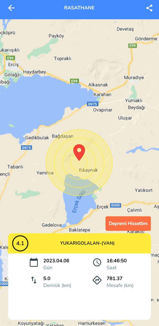 Kandilli Rasathanesinden gelen açıklamaya göre Van'ın Yukarıgolalan ilçesinde 4.1 büyüklüğünde deprem meydana geldiğini duyurdu.