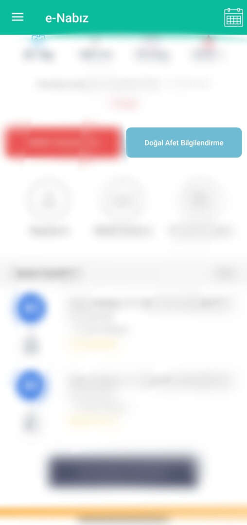 Buna göre, https://enabiz.gov.tr adresi veya e-Nabız mobil uygulama üzerinden e-Nabız profiline erişim sağlanarak ana sayfada yer alan "Doğal Afet Bilgilendirme" alanına giriş yapılacak. Ekranda yer alan «Doğal Afet Bilgilendirme Metni» onaylanacak.