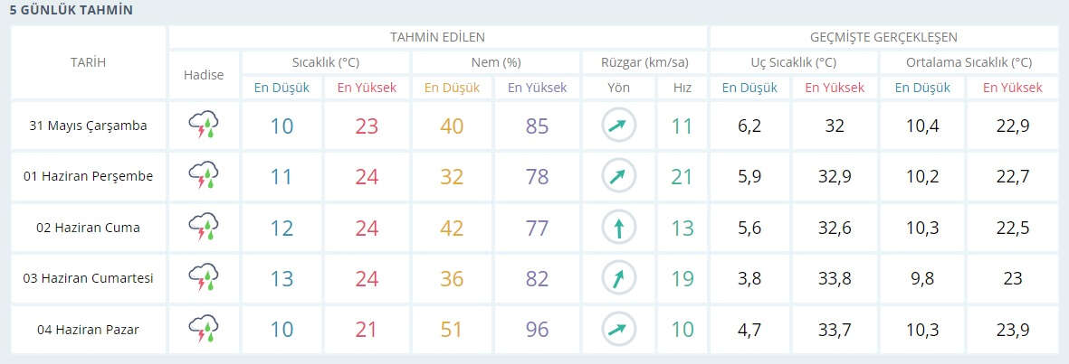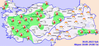 Türkiye’nin özellikle iç kesimleriyle beraber neredeyse tamamında bu hafta gök gürültülü sağanak yağış hakim olacak. Meteoroloji Genel Müdürlüğü tarafından yapılan açıklamada: ‘’ Ülkemiz genelinin parçalı ve çok bulutlu, ülke genelinin(Şanlıurfa ve Mardin hariç) aralıklı ve yerel sağanak ve gök gürültülü sağanak yağışlı geçeceği tahmin ediliyor. Yağışların, Güney ve İç Ege, Batı Akdeniz, İç Anadolu’nun batısı, Batı Karadeniz’in iç kesimleri ile Bilecik, Sinop çevreleri ve Kastamonu'nun kıyı kesimlerinin yerel olmak üzere kuvvetli olması bekleniyor. Rüzgarın İç Anadolu’nun doğusu, Doğu Karadeniz’in iç kesimleri ile Doğu ve Güneydoğu Anadolu'da güney yönlerden kuvvetli (40-60 km/saat) eseceği tahmin ediliyor. Güneydoğu Anadolu'nun doğusunda toz taşınımı bekleniyor.’’ ifadelerine yer verildi.