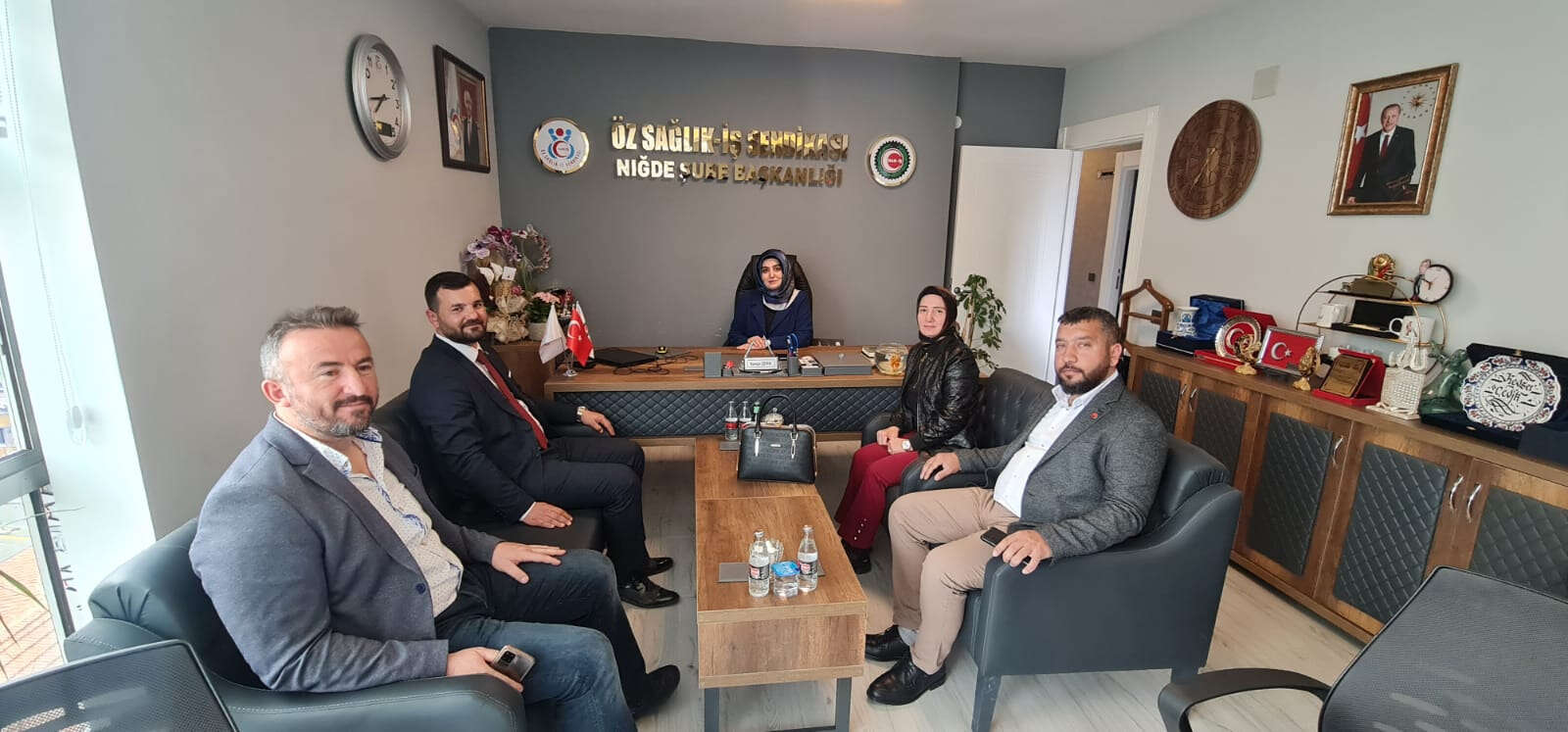 Yeniden Refah Partisi Niğde milletvekili adayları Ali Selman Işık ve Mehtap Temeltaş ile birlikte Yeniden Refah Partisi Niğde İl Yönetimi, Hizmet-İş Sendikası Niğde Şube Başkanı Kadir Yenel, Öz Sağlık-İş Sendikası Niğde Şube Başkanı Kevser Çevik ve Memur-Sen Niğde İl Temsilcisi Hasan Orhan’ı, sendikalar ziyareti kapsamında ziyaret etti.
