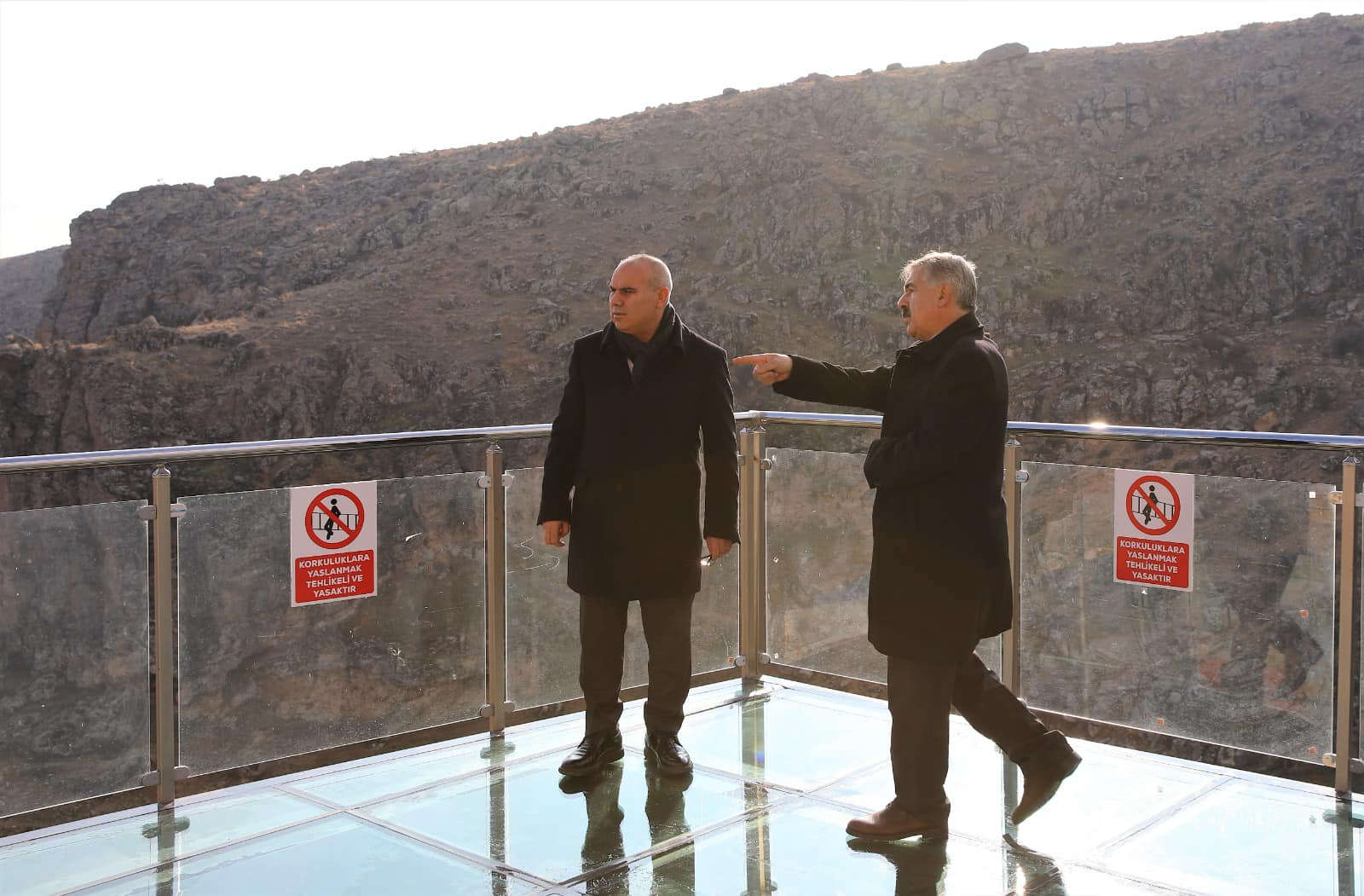 Niğde Valisi Mustafa Koç, ilimiz turizmine büyük katkı sağlaması hedeflenen Yeşilburç Turizm Köyünde İl Özel İdaresince yapımı tamamlanan Seyir Terasında incelemelerde bulunarak; İl Özel İdaresi Genel Sekreteri Ali Nebol’den devam eden çalışmalar hakkında bilgi aldı.
