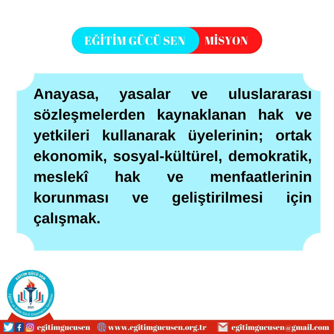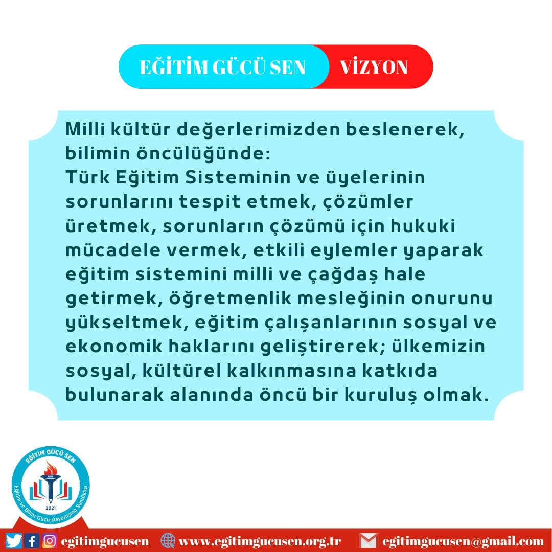 “Eğitim Sendikacılığına yeni bir anlayış getirmek, sendikacılığı evrensel düzeydeki kuruluş gayelerine yeniden ulaştırmak, eğitimden, eğitimciden aldığı güçle yine bu gücü eğitime ve eğitimciye yönelik hizmet olarak sunmak, eğitim/eğitimci ortak paydasında buluşan ülke sevdalısı gönüllülerimizle çıktığımız yolculukta hazırlıklarımız tamam. Eğitim ve Bilim Gücü Dayanışma Sendikamız 20.09.2021 tarihi itibariyle Çalışma Bakanlığının "387" Dosya Numarası, Ankara İl Sivil Toplumla İlişkiler Müdürlüğünün "06MS495" kütük numarası ile resmi faaliyetlerine başlamıştır.”