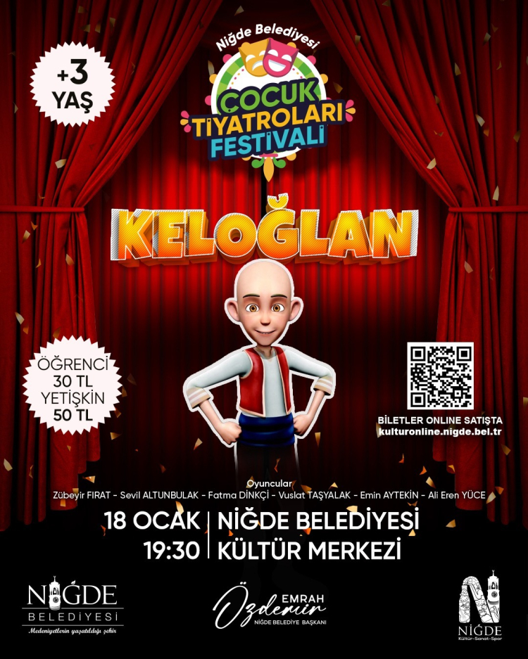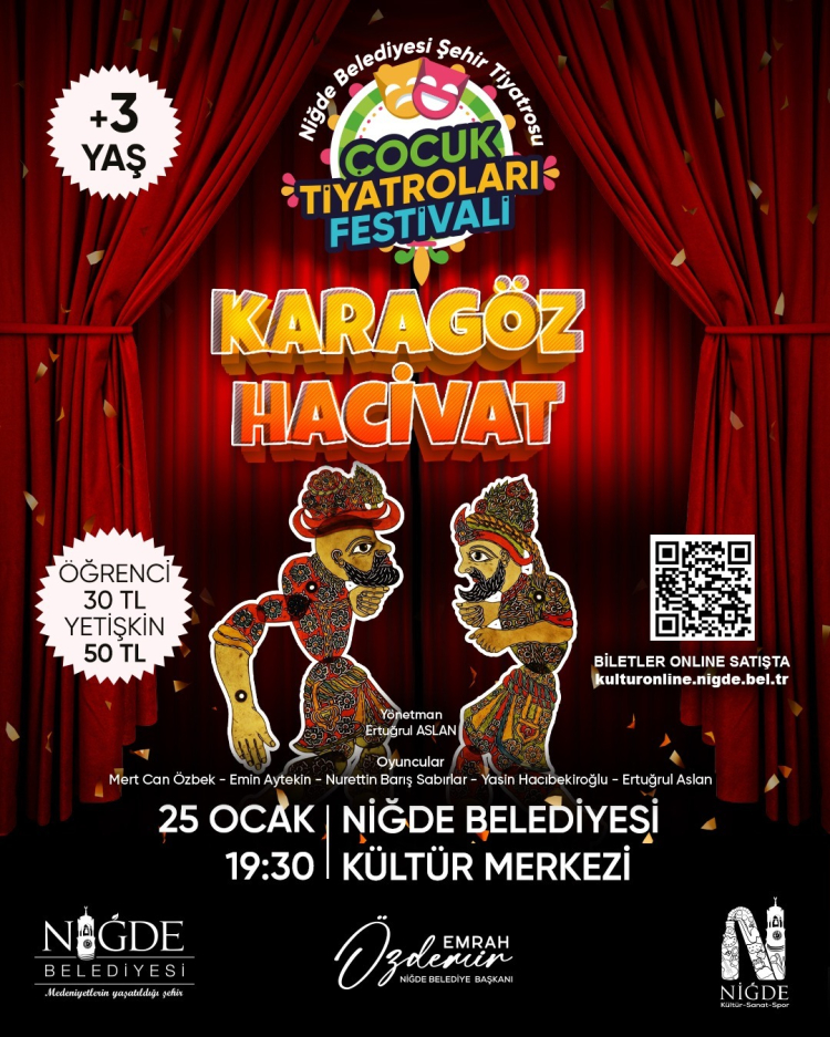 Niğde Belediyesi tarafından düzenlenen tiyatro festivalinin ilk günü 18 Ocak Cumartesi saat 19.30’da “Keloğlan” oyunu ile başlayacak. 19 Ocak Pazar günü saat 17.00’de ise “Oz Büyücüsü” adlı oyun minik tiyatroseverlerle buluşacak. Geleneksel Türk tiyatrosunun en önemli karakterlerinden Karagöz ve Hacivat, 25 Ocak Cumartesi günü saat 19.30’da sahneye çıkacak. 26 Ocak Pazar günü saat 17.00’de ise “İyilik Perisi Kötü Krala Karşı” adlı oyun çocuklara iyilik ve doğruluk temalarını eğlenceli bir dille anlatacak.