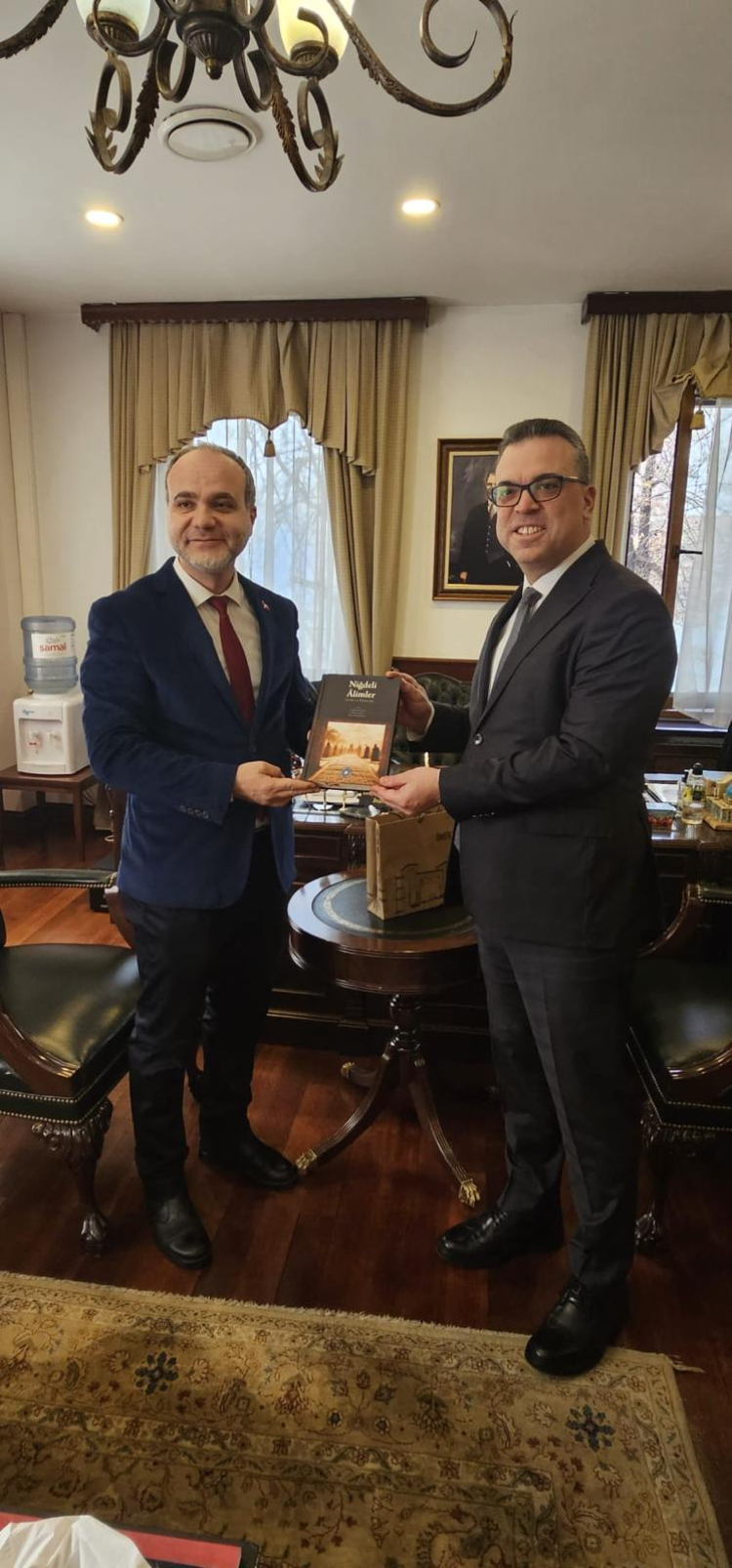 NÖHÜ Rektörü Prof. Dr. Hasan Uslu, Almatı Başkonsolosu Evren Müderrisoğlu ve Eğitim Ataşesi Ayhan Korkmaz’ı ziyaret etti. Kazakistan ve Türkiye arasında eğitim, kültür ve farklı alanlarda iş birliği projeleri üzerine görüşme gerçekleştirdi.