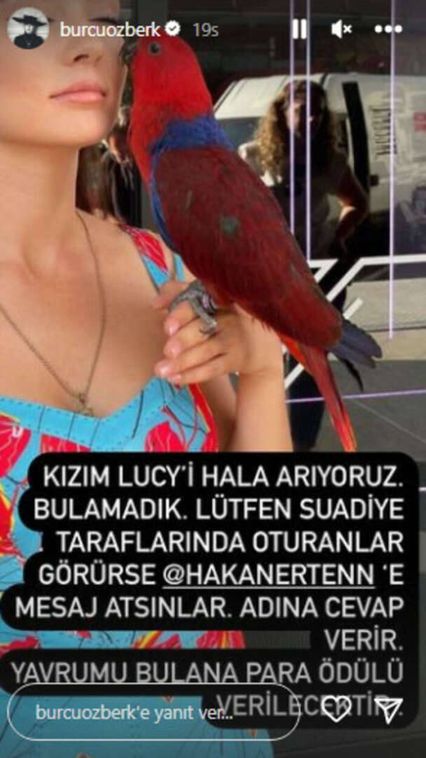 Çapkın güzel Burcu Özberk'in, çok sevdiği papağanı Lucy evden kaçtı. Özbek kuşunu bulana ödül vereceğini belirterek şunları söyledi "Dünyalar güzeli kızım balkondan uçmuş. Suadiye ve çevresinde görenler lütfen bana mesaj atabilir mi?"