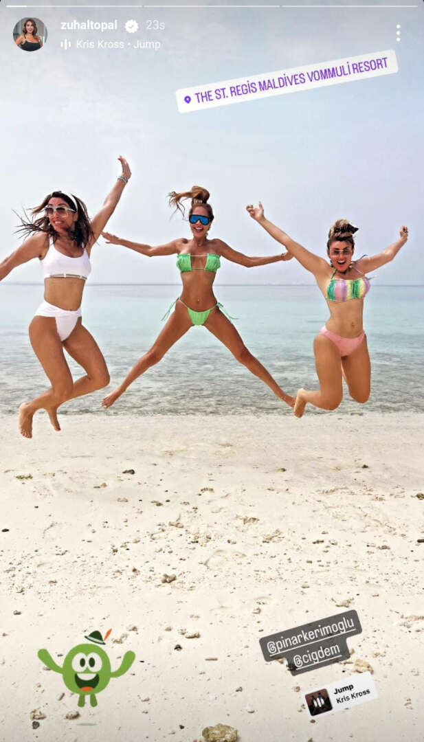 Ailesi ve yakın arkadaşları ile tatile çıkan Topal’ın bikinili paylaşımı çok beğenildi.