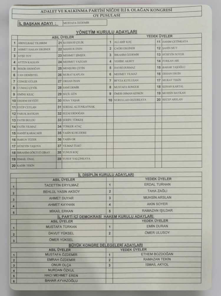 Niğde'de düzenlenen kongreye, Milli Savunma Bakan Yardımcısı Alpaslan Kavaklıoğlu, AK Parti Niğde Milletvekili Cevahir Uzkurt, MHP Niğde Milletvekili Cumali İnce, Kayseri Büyükşehir Belediye Başkanı Memduh Büyükkılıç, AK Parti MKYK Üyesi Erdoğan Özegen, AK Parti Niğde İl Başkanı Mustafa Özdemir, Niğde Belediye Başkanı Emrah Özdemir ve partililer katıldı.