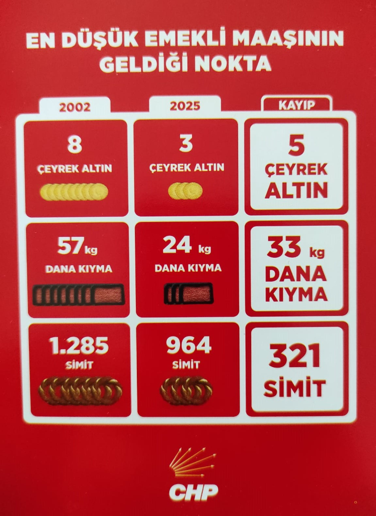 Bizde hesap ettik emeklinin 2002 yılındaki maaşı ile 8 çeyrek altın alabiliyorken 2025 yılında 3 çeyrek altın alabiliyor.