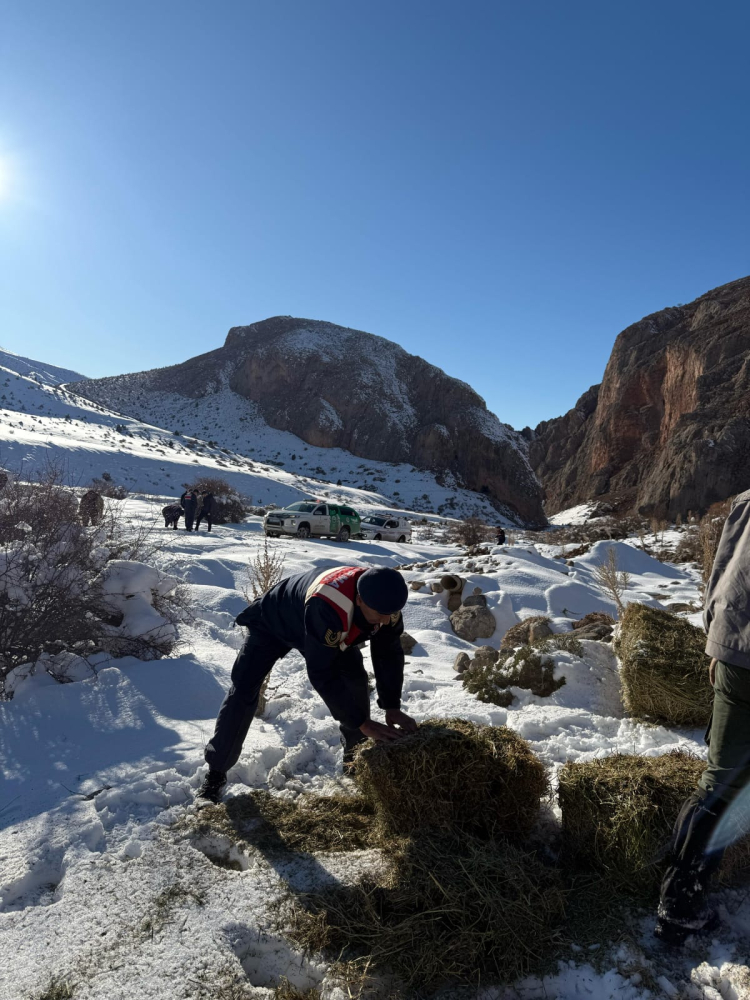 Niğde İl Jandarma Komutanlığı ve Çamardı Doğa Koruma ve Milli Parklar ekiplerince Niğde'nin Çamardı ilçesinde Pınarbaşı Yaylası Mevkiinde olumsuz hava koşulları sebebiyle besin bulmakta zorlanan dağ keçileri için doğaya yem bırakıldı.