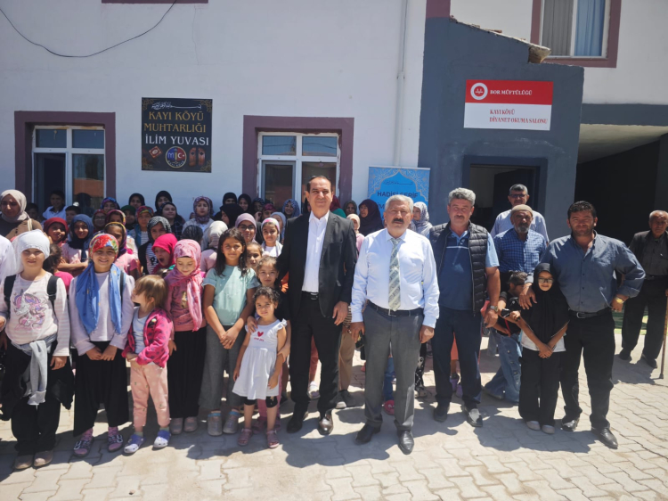 Niğde'nin Bor ilçesine bağlı Kayı köyünde başta çocuklar olmak üzere toplumun tamamına hizmet edecek olan Diyanet Okuma Salonu hizmete sunuldu. Niğde İl Müftüsü Hüseyin Gün, Bor İlçe Müftüsü Hüseyin Çakır Kayı köyü imamı Hüseyin Cirit ve köy halkının katılımıyla açılışı yapılan okuma salonu, Kayı köyü hayırseverleri tarafından inşa ettirildi. Yeni hizmete sunulan Diyanet Okuma Salonu; toplantı, çeşitli dini ve milli günler için ve Kur'an-ı Kerim okuma eğitimi için kullanacak. Salonda, 110 kız 80 erkek çocuğa Kur'an-ı Kerim dersi verilecek.