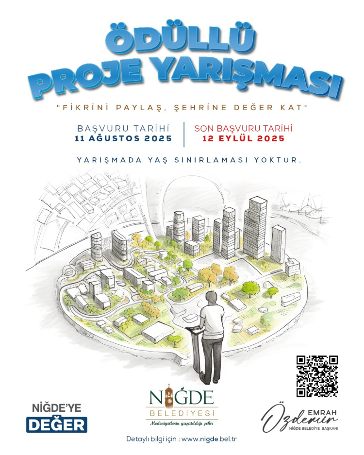 Niğde Belediyesi, “Fikrini Paylaş, Şehrine Değer Kat” sloganıyla Ödüllü Proje Yarışması’nı başlattı. Şehrin geleceğine yön verecek, uygulanabilir, yaratıcı ve toplumsal fayda sağlayacak fikirlerin hayata geçirilmesi amacıyla düzenlenen yarışma, her yaştan vatandaşın katılımına açık olarak gerçekleştiriliyor.