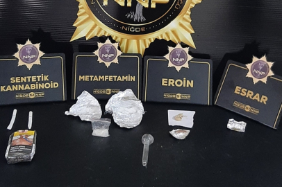 25,82 gr. Metamfetamin maddesi, 8,93 gr. Eroin maddesi, 2,81 gr. Sentetik Kannabinoid (Bonzai) maddesi, 1,08 gr. Sentetik Kannabinoid (Bonzai) hammaddesi, 5 adet Cam Aparatı ele geçirildi.