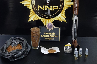 233,223 gr. Sentetik Kannabinoid maddesi, 25,23 gr. Metanfetamin maddesi, 1,03 gr. Eroin maddesi, 0,79 gr. Esrar maddesi, 2,43 gr. Kenevir Tohumu, 1 adet Av Tüfeği, 4 adet Fişeği, 3 adet Uyuşturucu madde kullanım aparatı ele geçirildi.