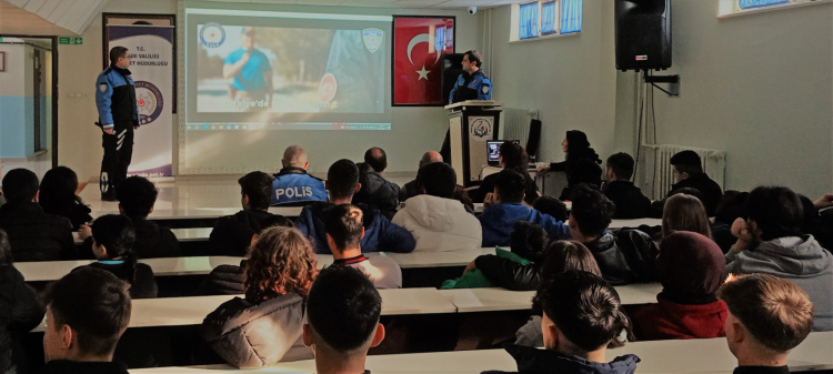 Çocuk ve Gençler Sosyal Koruma ve Destek Programı (ÇOGEP) “Bizim Çocuklar Projesi” kapsamında; Mehmet Akif Mesleki ve Teknik Anadolu Lisesinde eğitim gören 120 öğrenciye yönelik Toplum Destekli Polislik, Çocuk ve Siber Suçlarla Mücadele Şube Müdürlüklerince ziyaret gerçekleştirilerek, “Polis nasıl olunur?, Polislik başvurusu şartları, Asayiş olaylarına karşı alınması gereken tedbirler, Siber dolandırıcılık ve güvenli internet kullanımı, Akran zorbalığı, 112 Acil yardım hattı ve önemli telefonların kullanımı” konularında bilgilendirme faaliyetleri gerçekleştirilerek broşür dağıtımı yapıldı.