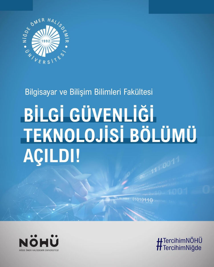 Birçok alanda öne çıkan Niğde Ömer Halisdemir Üniversitesi dijital çağa uygunbölüm ve alanlarla da adını duyurmaya devam ediyor. Bu kapsamda üniversitenin Bilgisayar ve Bilişim Bilimleri Fakültesi bünyesinde Bilgi Güvenliği ve Teknolojisi bölümü açıldı. Son zamanlarda özellikle yapay zekâ ve dijital ürünlerin bilgi güvenliği ve işlenmesi açısından taşıdığı önem nedeniyle bu alanda yetişecek kişiler de oldukça önem kazanıyor. Üniversiteden yapılan açıklamada:''Üniversitemizde ilgili sektörde geleceğin bilgi güvenliği uzmanlarının yetişeceği Bilgi Güvenliği ve Teknolojisi Bölümü açıldı. Üniversitemize ve Niğde’mize hayırlı olsun" ifadelerine verildi.