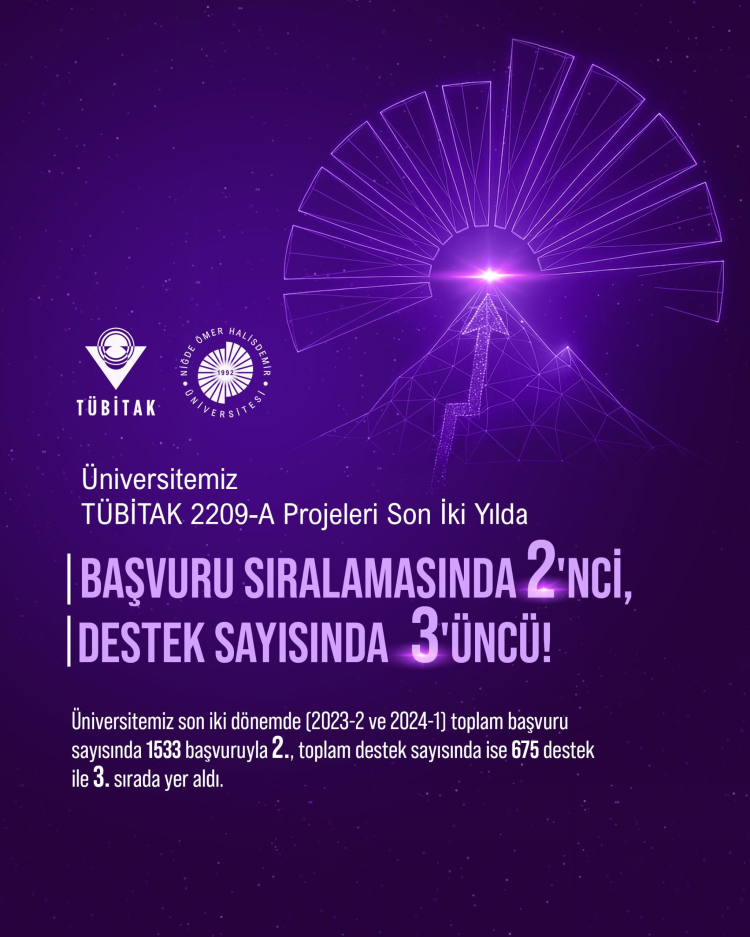 Öte yandan NÖHÜ, son iki yılda toplam 1533 başvuruyla Türkiye’deki tüm yükseköğretim kurumları arasında 2’nci olurken, aynı zamanda bu yıllarda aldığı toplam 675 destek ile 3’üncü sırada yer aldı.
