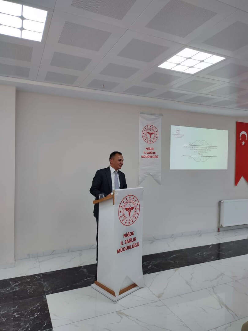 Düzenlenen eğitimi ziyaret eden Niğde İl Sağlık Müdürü Dr. Koray Okur Niğde’ye misafir olarak gelen katılımcılara ve eğitmenlere başarılar diledi.