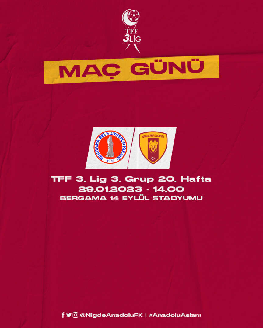 Niğde Anadolu FK 18 takımlık TFF 3. lig 3. Grupta 10 puanla 18. sırada yer alıyor. Sarı kırmızılı ekip haftaya ligin şampiyon adaylarından Çankaya FK'yı ağırlayacak.