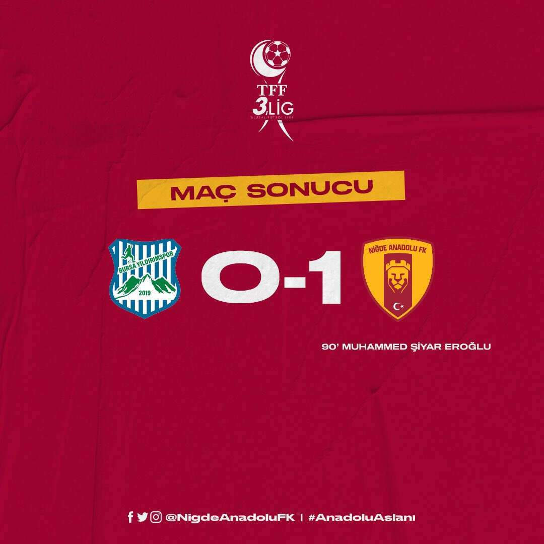 Sezon başından bu yana galibiyete hasret kalan Niğde Anadolu FK, ilk galibiyetini Bursa deplasmanından aldı. 1-0 biten karşılaşmanın tek golü ise 90. dakikada Muhammed Şiar Eroğlu'nda geldi.