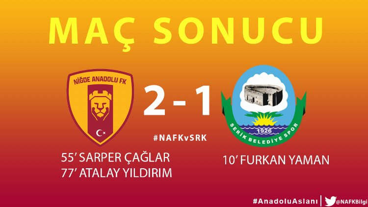 Serikspor'un 10'uncu dakikada Furkan Yamanla bulduğu golle karşılık, Temsilcimiz 55'nci dakikada Sarper Çağlar 77'nci dakikada ise Atalay Yıldırım'ın golleriyle sonuca ulaştı.