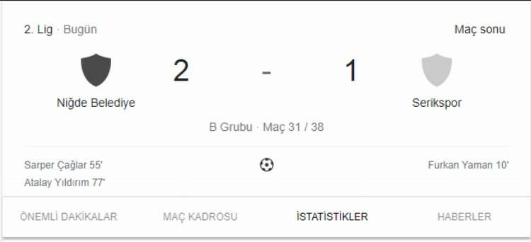 Niğde Ömer Halisdemir Üniversitesi Kampüs Statında oynanan karşılaşmada rakip takım 10'uncu dakika öne geçmesine rağmen temsilcimiz ikinci yarıda bulduğu gollerle 3 puanı kaptı.