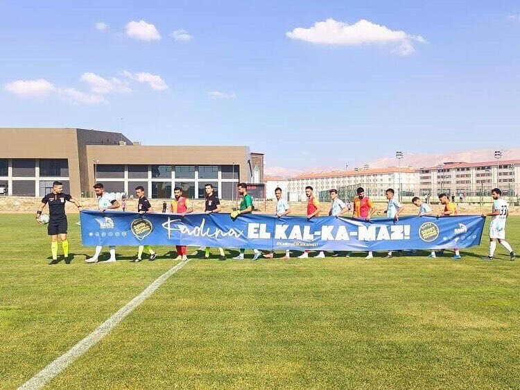 Kadına yönelik şiddetle mücadele kapsamında Niğde’de oynanan Niğde Anadolu FK ve Beyoğlu Yeni Çarşı karşılaşması öncesi sporcular “Kadına EL KAL-KA-MAZ” pankartı ile sahaya çıktılar.