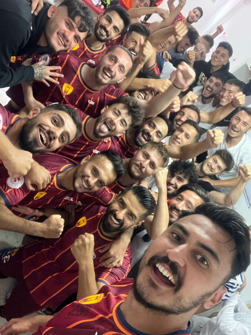 Temsilcimiz futbolcularının soyunma odasındaki galibiyet pozu..
