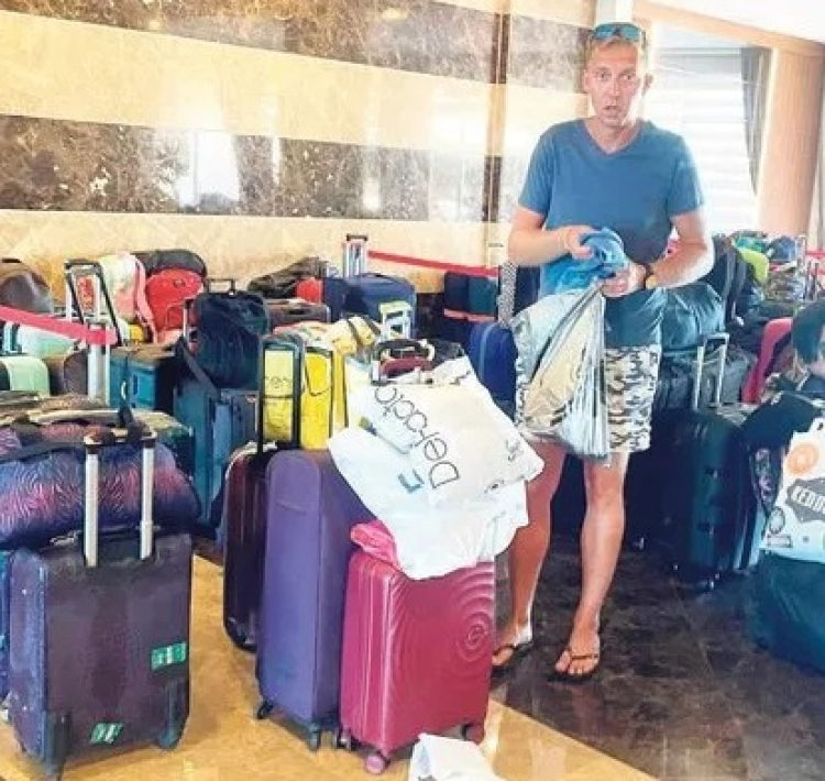 Otelin lobisi... "Bavul mağazası" gibi... Gelen turistlerin, memleketine dönen turistlerin bavulları.